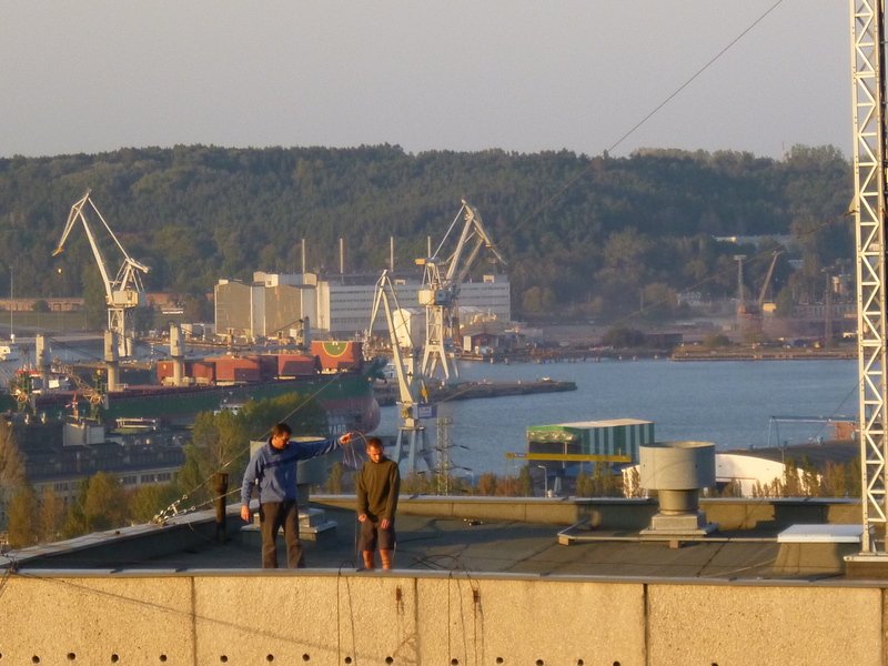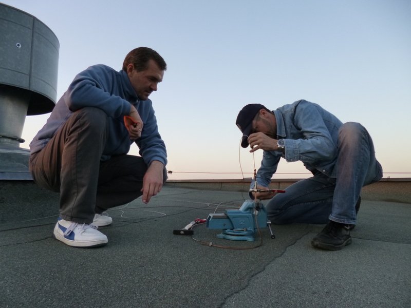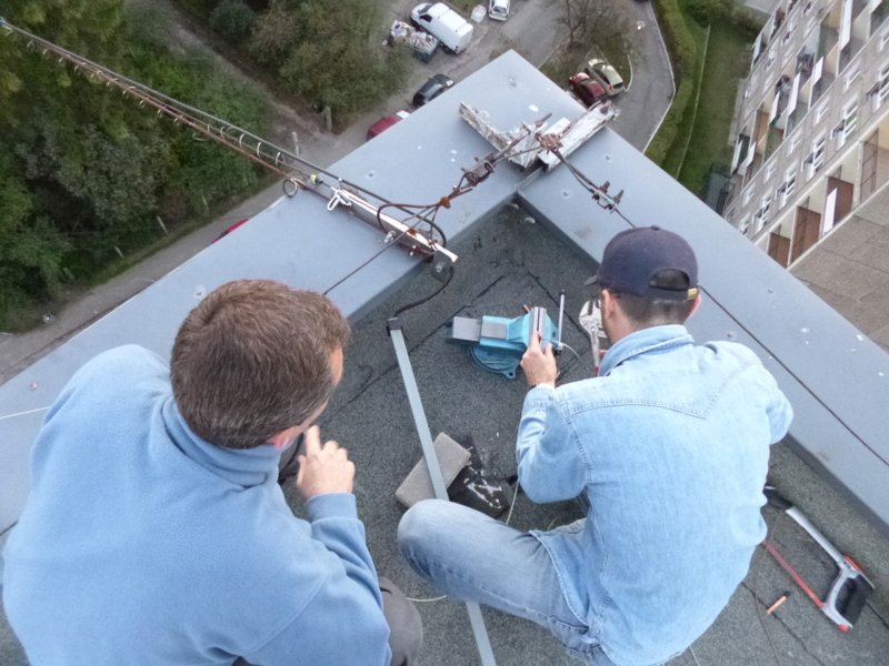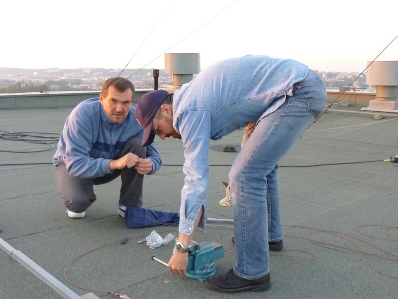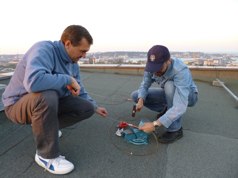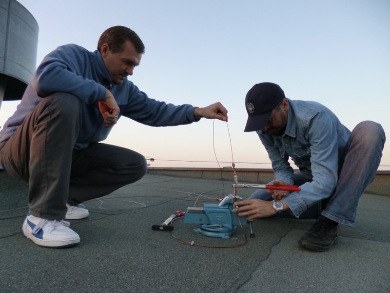 Rok 2014 stoi pod znakiem aktywności radiowej (aktywności w naszym rozumieniu;-), czyli kilka łączności i dalsze eksperymenty). Dlatego podjęliśmy decyzję o odbudowie anteny drutowej na niskie pasma fal krótkich. Po dyskusjach wybór tym razem padł na antenę typu WINDOM. Po kilku podejściach do terminów montażu w końcu w dniu 18.09.2014 roku zabraliśmy się za montowanie anteny. Podobnie jak wcześniej skorzystaliśmy z przestrzeni pomiędzy dwoma 11 piętrowymi akademikami. Antena została wyposażona w jedno kilowatowy balun oraz nowy fider. Pomiary wykonane po zawieszeniu anteny wykazały jej daleko idącą kompromisowość, nie mniej interesujące nas niskie pasma uzyskały zadowalający SWR.