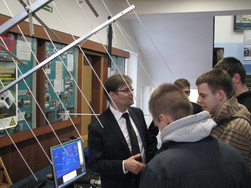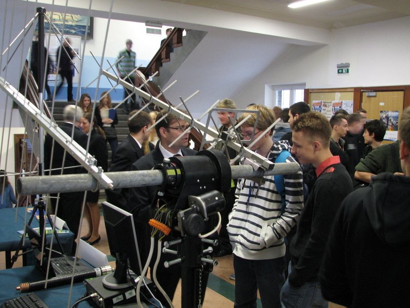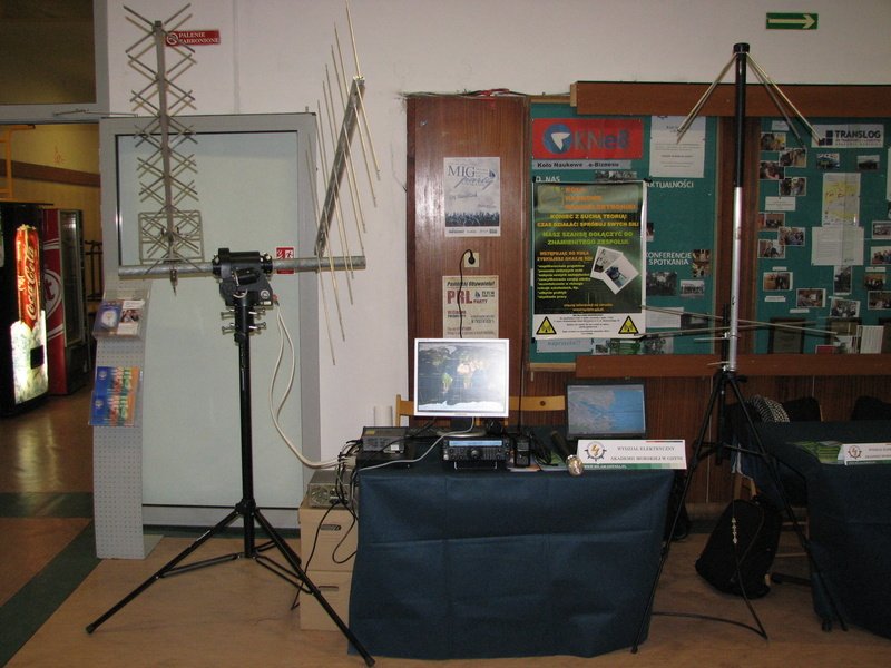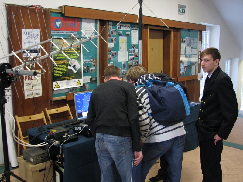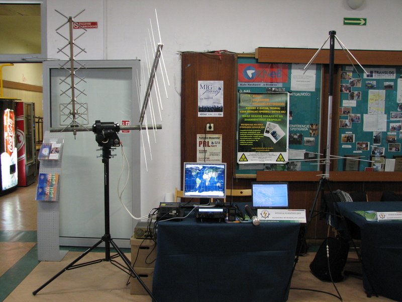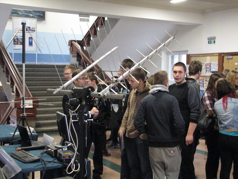 Utartym już zwyczajem prezentowaliśmy mobilną stację naziemną do łączności satelitarnych, zaś w tle prezentowaliśmy odsłuchy z Trójmiejskich przemienników oraz łączności z pasm morskich. Dużym zainteresowaniem cieszyło się kierowanie zestawem anten, które podążały za wybranym obiektem przestrzeni kosmicznej.