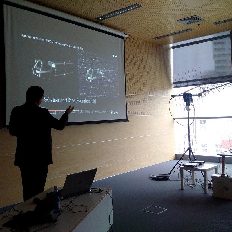 Na koniec roku 2015 otrzymaliśmy zaproszenie na Gdynia Game Festival 2015. Początkowo byliśmy sceptyczni, gdyż mało przekonujący wydawał nam się udział w imprezie poświęconej grom komputerowym. Jak się jednak okazało Gdynia Game Festival to szyld, za którym kryją się trzy dni niezwykle ciekawych pokazów, konferencji i prezentacji traktujących o innowacyjności. Poczuliśmy, że to coś dla nas, zaś nasze mobilne stanowisko do łączności satelitarnych może być atrakcyjnym punktem tej imprezy. Nie myliliśmy się. Nasze stanowisko i przygotowana prezentacja wzbudziły spore zainteresowanie zarówno gości, jak i organizatorów. W czasie prezentacji przedstawiliśmy realizowane i planowane przez nas projekty (ARISS, nasłuchy sond kosmicznych, GENSO, PIRAD). Dużym zainteresowaniem cieszyły się również symulacje śledzenia obiektów wykonywane z wykorzystaniem zestawu anten (X- Quod 70cm i LPDA) na rotorze Az-El sterowanych przy pomocy programu Orbitron. Mamy nadzieję, że w przyszłym roku również zostaniemy zaproszeni.