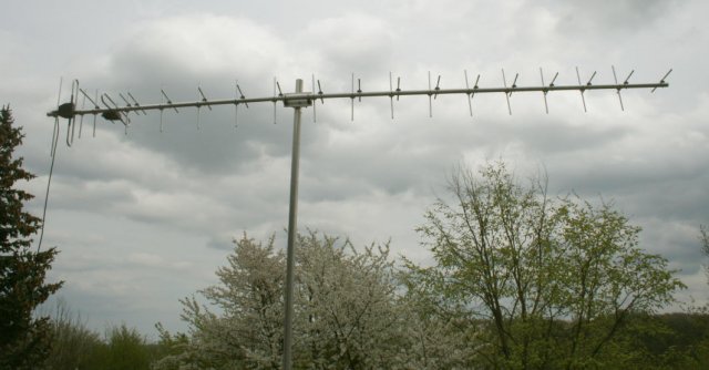 Wedle podawanych przez producenta parametrów antena ta ma 14dBD zysku i powinna być wystarczająca do odbioru sygnałów z satelity PW-Sat 2. Krzyżowa budowa anteny umożliwia pracę w polaryzacji pionowej, poziomej a po odpowiednim zasileniu polaryzacją prawo- lub lewo-skrętną. Choć satelita będzie nadawał w polaryzacji liniowej, antena odbiorcza będzie przystosowana do pracy w polaryzacji kołowej, by zapobiec zanikom sygnału związanych z obracaniem się satelity w przestrzeni. Antena została wykonana z rurek aluminiowych. Boom anteny stanową dwa odcinki rury aluminiowej fi 25mm i ściance 2mm o długościach 198cm i 135cm. Direktory i reflektory wykonane są z rurek aluminiowych o różnej długości (wydłużające się ku tyłowi). Wibrator stanowi dipol zamknięty z rurki aluminiowej a zasilany jest przez układ dopasowujący zamknięty w plastikowej puszce zakończonej gniazdem antenowym typu N. Elementy mocowane są do boomu przez nierdzewne śruby M3 oraz nierdzewne nakrętki samohamowne. Pozycja elementów na okrągłym boomie stabilizowana jest poprzez specjalnie wyprofilowaną blaszkę aluminiową. Antena dociera do odbiorcy w częściach z bardzo skromną instrukcją montażu – niektóre informacje są całkowicie pominięte. Brak też oznaczeń na elementach ułatwiających montaż. Przed montażem elementy warto rozłożyć i dokładnie posegregować. Sam montaż nie nastręcza większych problemów, jeśli rozwiąże się przed nim wszystkie niejasności, jest jednak dość czasochłonny. Ogólne jakość wykonania anteny można ocenić jako dobry, choć wytrzymałość mechaniczna niektórych elementów – szczególnie łączenia boomu i mocowania do masztu budzą wątpliwości. Antena została wstępnie zmontowana w celu sprawdzenia jej parametrów. Po zamontowaniu na krótkim maszcie sprawdzony został SWR. Dla polaryzacji poziomej dla 435MHz wynosił on 1,02 i nie przekracza 1,5 w przedziale od 400MHz do 460MHz. Dla polaryzacji pionowej SWR dla 435MHz wynosił 1,4 i również w podobnym przedziale częstotliwości nie przekracza 1,5 – da się jednak zauważyć większe jego zafalowania - być może jest to wpływ otaczających elementów stalowych. Antena przed pomiarem nie była w żaden sposób strojona, nie ma też specjalnych możliwości strojenia, poza docinaniem direktorów. Zysk anteny został wstępnie sprawdzony w porównaniu do anteny kierunkowej o zysku około 10-12dBD i odbierany sygnał z przemiennika był silniejszy o 3-4dB, tak więc bardzo pobieżne sprawdzenie wykazuje, iż zysk anteny jest zgodny z deklarowanym. Ogólnie antena spełnia oczekiwania i jest dobrym wyborem do odbioru satelity w paśmie 70cm. Więcej zdjęć znajdziecie poniżej.